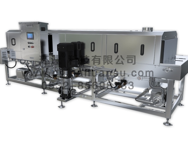 環(huán)速隧道式清洗機(jī)XK-300周轉(zhuǎn)箱洗箱機(jī)應(yīng)用于食品或容器具的清洗和消毒設(shè)備。食品、容器具等待清洗器具從洗箱機(jī)輸入端進(jìn)入清洗隧道,經(jīng)過預(yù)洗、主清洗、漂洗、最后輸出,完成清洗過程。周轉(zhuǎn)箱洗箱機(jī)主要用于屠宰、肉類、水產(chǎn)、蔬果、飲料、釀造等食品加工廠或食品物流中心、配送中心等,周轉(zhuǎn)箱洗箱機(jī)也適用于各種周轉(zhuǎn)筐、盤、箱、托盤、等容器具的清洗和消毒。可節(jié)省用水量達(dá)70%,可比古老的人工清洗方法能節(jié)省人力7-8人。